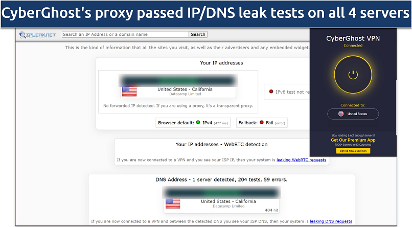 Another strength is its WebRTC leak protection, which blocks any communication that could expose your real IP address. CyberGhost's free proxy also filters out malicious content and uses encrypted HTTPS.