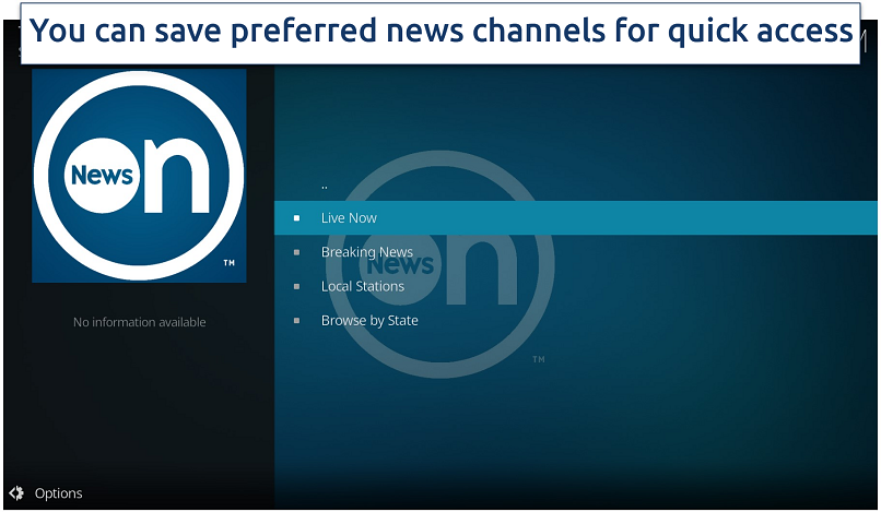 One downside of this live TV Kodi addon is that stream availability was inconsistent in our tests, meaning some channels may not work. For reliable access, be prepared to troubleshoot or refresh streams occasionally, as this is common with live TV addons on Kodi.