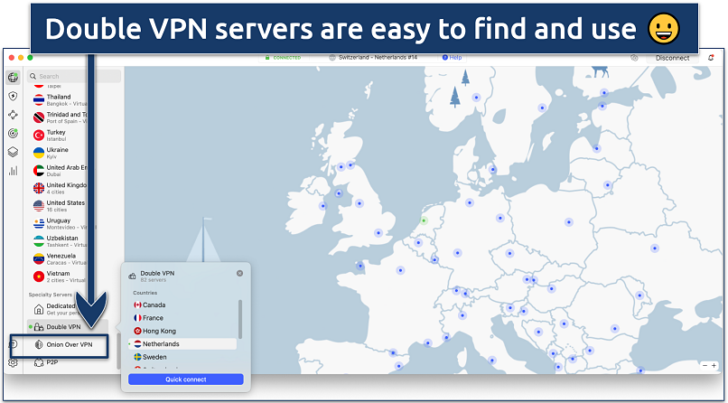 Best Feature | Double VPN servers add an extra level of encryption to keep your data away from prying eyes |