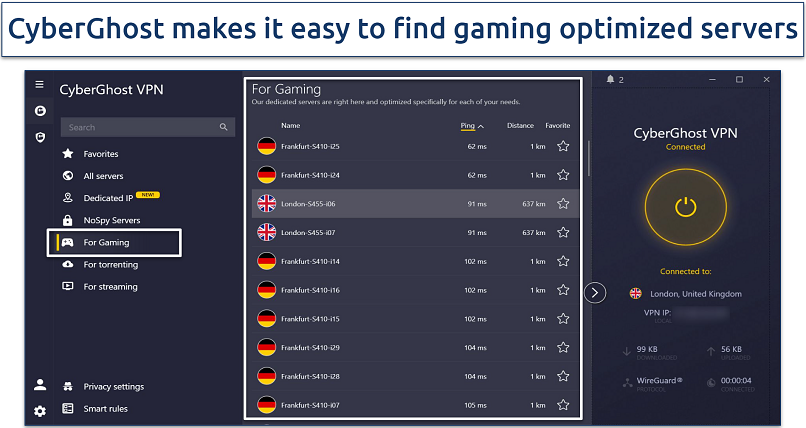 Best Feature | Optimized gaming servers in the US, the UK, France, and Germany |