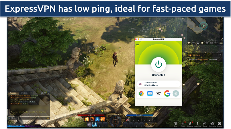 ExpressVPN is the fastest VPN we tested. A lot of that comes down to its in-house Lightway protocol, which is built for speed and reliability. It only slowed down our connection by about 5%, which is pretty impressive, especially since many VPNs can cut your speed by more than half. We tested servers in South Korea and Japan and got low ping times to play Lost Ark lag-free. So whether you're raiding or just exploring, ExpressVPN keeps you connected and quick on your feet.