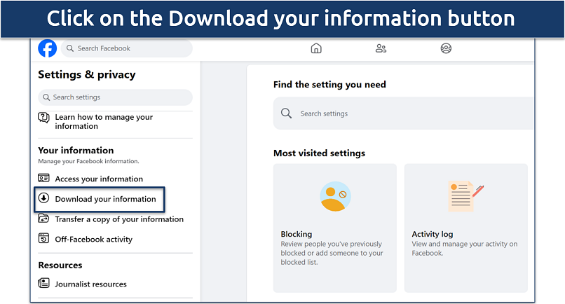 Step 1. Go to your settings page, look for Your information, and select the Download your information option.