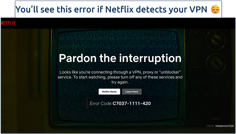 Sometimes, Netflix detects that you’re using a VPN and either only shows you Originals or the following error message: