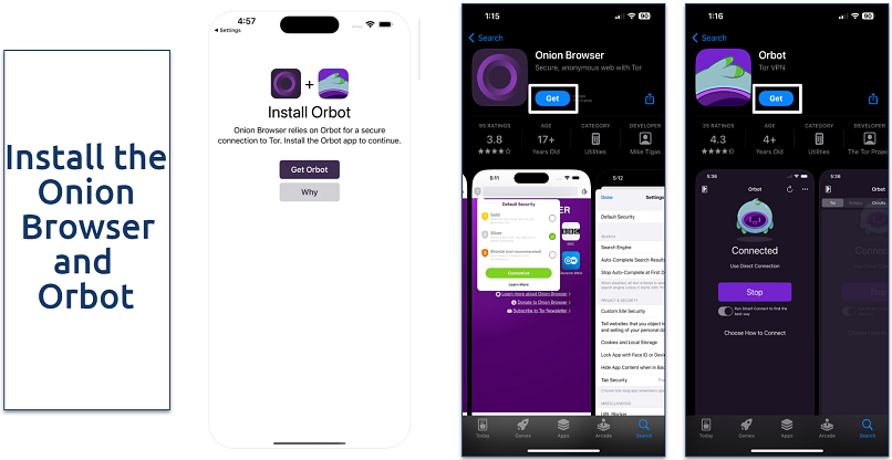 Step 1. Download the Onion Browser and the Orbot app from the Apple App Store.