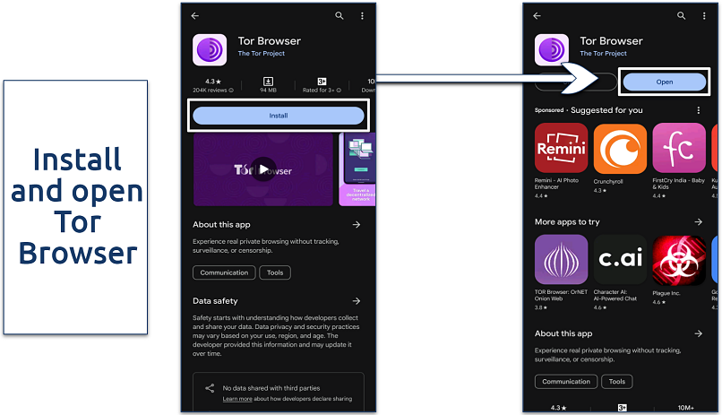 Step 1. Go to the Google Play Store and download the official Tor browser.