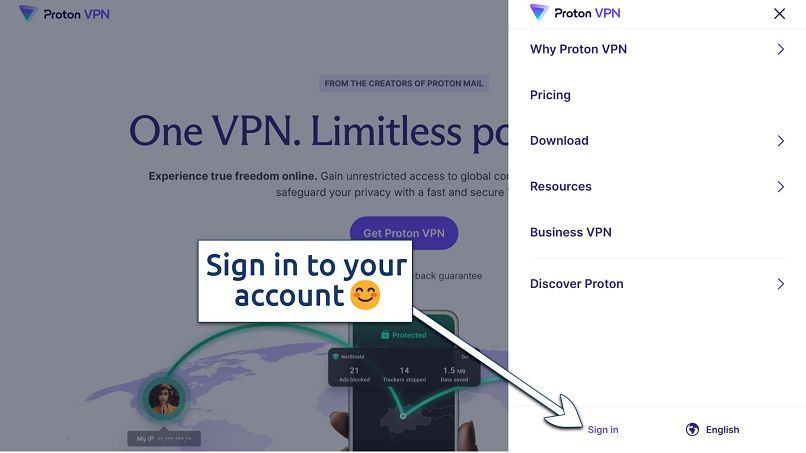 - Go to the website and log in. Visit Proton VPN’s main website and use your login details to access your account.
