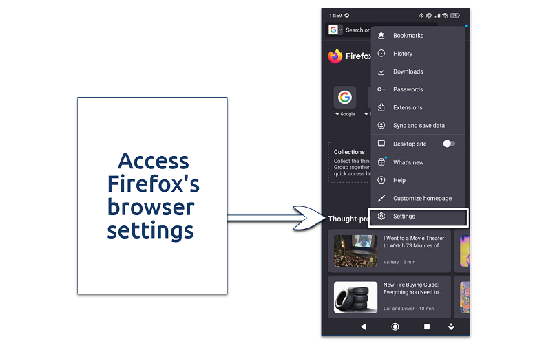 2. Access Settings. Tap the three dots (⋮) menu in the bottom-right corner of the screen. Select Settings from the menu that appears.