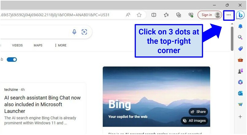 Step 2. Look to the top-right corner of the browser window and click on the three horizontal dots.