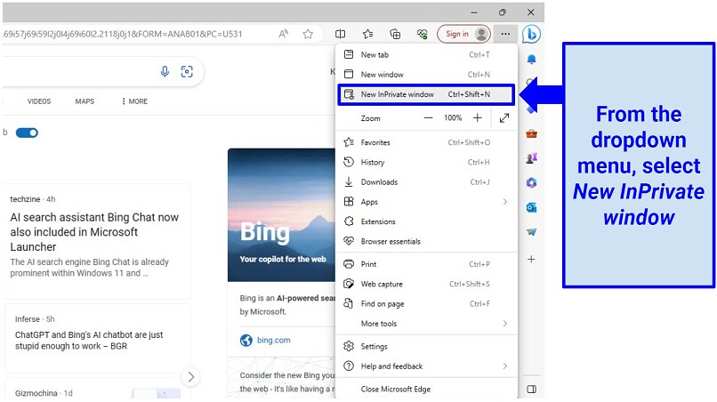 Step 3. Select New InPrivate Window from the menu options.