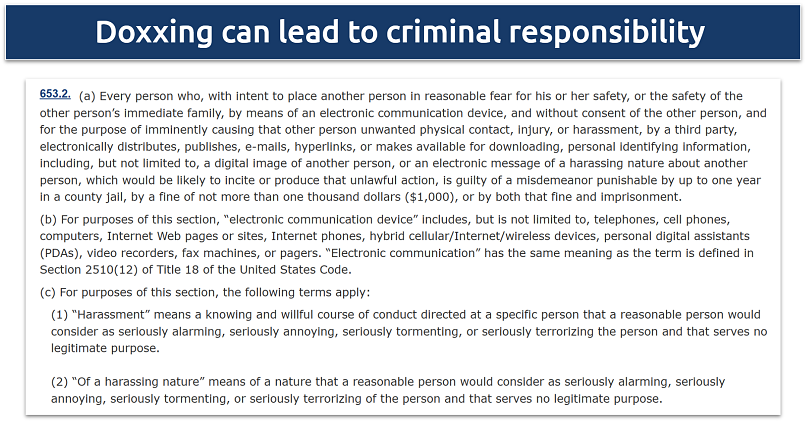 Generally, criminally punishable doxxing should meet these legal criteria: