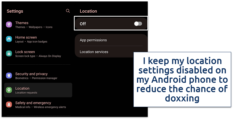 - Turn off location services. On iOS, go to Settings > Privacy, and disable GPS tracking in Location Services. For Android, go to Location from the device’s Settings. I advise keeping the location services enabled only for essential apps.