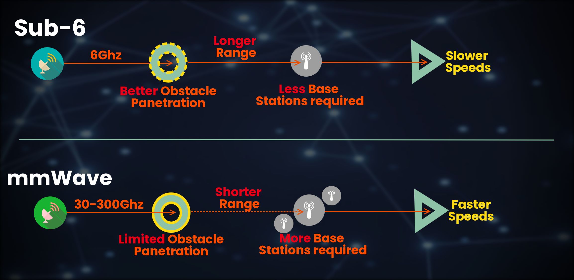 5G technology is built on radio waves technology, and it relies on two types of radio wave spectrum - Sub-6 and mmWave.