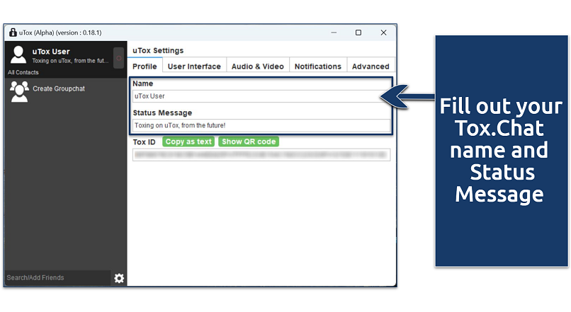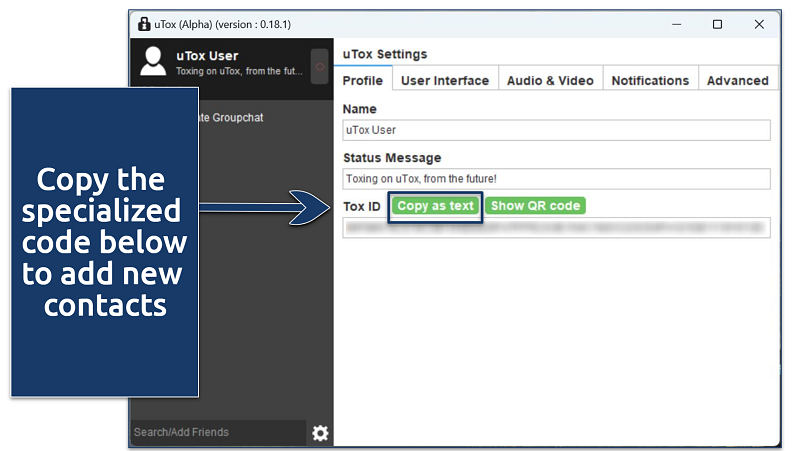 Since Tox is decentralized, it doesn’t use usernames or phone numbers. Instead, it gives you a unique Tox ID, which works like a contact address. To add friends, simply share your Tox ID with them. If you're using a mobile device, you can find your Tox ID under Profile settings in most Tox clients.