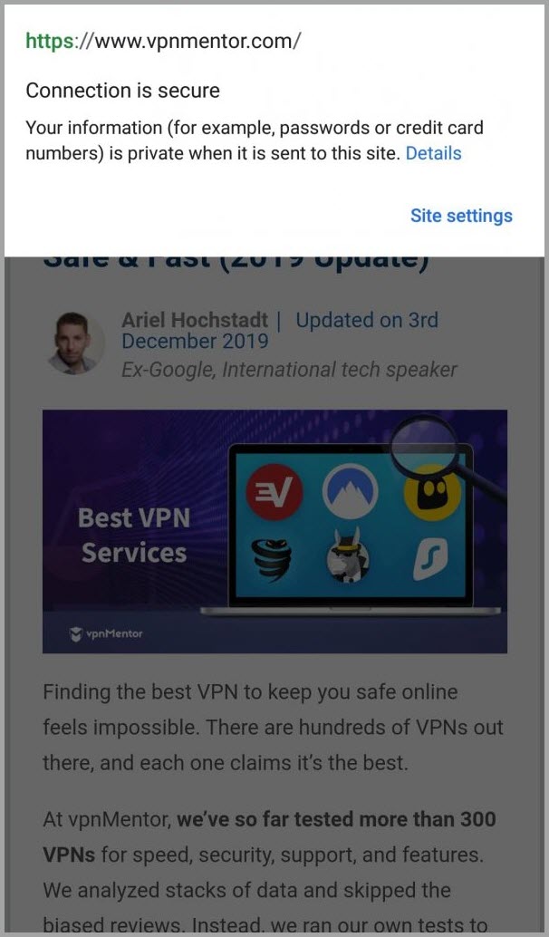 For example, this is what Google Chrome for Android displays when you visit a secure website: