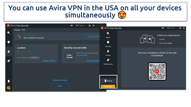 Avira Phantom VPN's free plan lets you protect unlimited devices simultaneously so your entire household can use it. I didn’t have connection problems while testing Avira on multiple devices, including my PC, Mac, and iPhone.