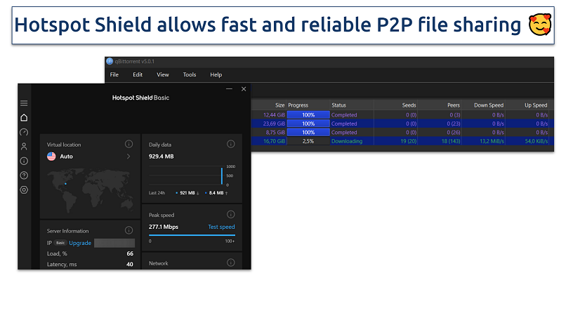 Hotspot Shield's Hydra protocol delivers highly reliable connections. While it certainly isn’t the fastest option on this list, we had steady download speeds on the free US servers, with no sudden slowdowns or disconnects — so we could stream in HD and torrent without interruptions.