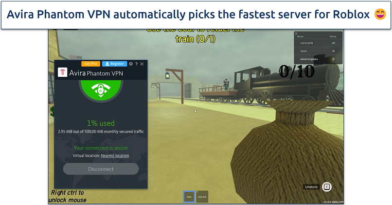 Performance was impressive for a free VPN. Our tests on Avira’s nearby servers showed decent average speeds of 92 Mbps and a ping of 31 ms, which kept Roblox running smoothly. Even in fast-paced games like Tower of Hell, we didn't experience noticeable lag or sudden disconnects.