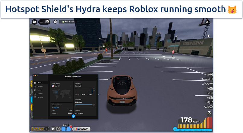 Hotspot Shield’s Hydra protocol delivers fast speeds and low ping, making it a solid choice for Roblox. It optimizes data routing to reduce congestion and latency, which is useful for fast-paced games. During our tests on Hotspot Shield’s nearby servers, we experienced reasonable speeds of 98 Mbps and recorded a 36 ms ping. This means you can enjoy Roblox without frustrating slowdowns, even in action-heavy games.