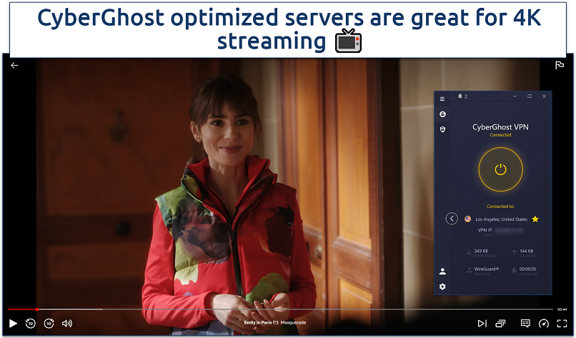 CyberGhost’s specialized servers for streaming, gaming, and torrenting make it a great alternative to NordVPN. These optimized servers deliver excellent speeds and low latency. My testers used a special Netflix server and streamed Emily in Paris in UHD without buffering. CyberGhost also has dedicated servers for platforms that NordVPN didn't work with at all during our tests, such as Disney+, BBC iPlayer, and Hulu.