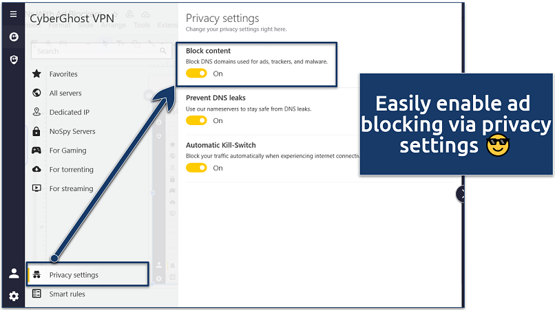 2. CyberGhost — One-Click Ads and Virus Blocking Through Smart Content Filtering