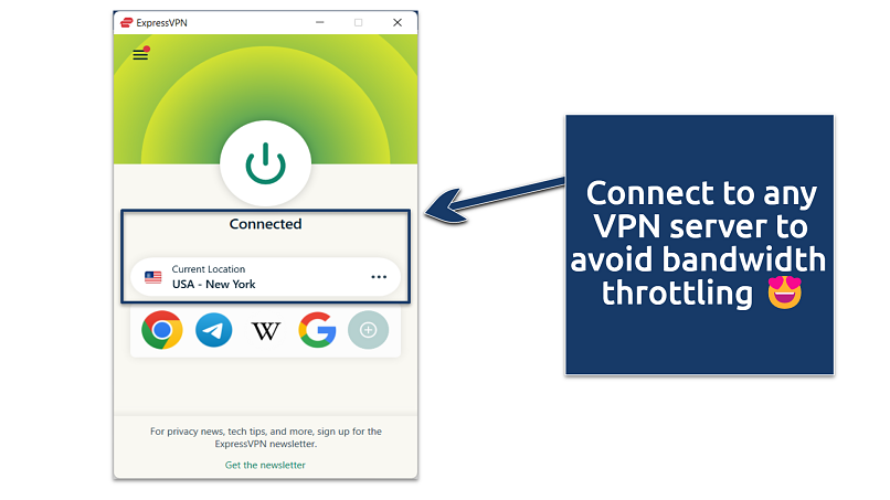 - Use a reliable VPN like ExpressVPN to prevent throttling. ISPs often reduce bandwidth for certain activities or websites. A VPN encrypts your data, concealing your online activities from your ISP, which helps prevent such throttling.