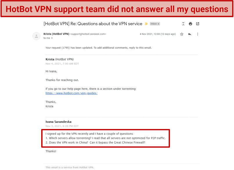 There’s no info on HotBot VPN’s website, and I couldn’t get an answer from support. Since the VPN couldn’t unblock any streaming platforms, I would conclude it doesn’t work in China.