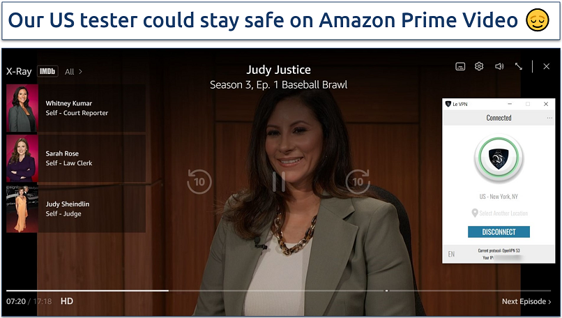 Once again, our US correspondent successfully streamed Judy Justice on Amazon Prime Video with the same connection. Unfortunately, the video took a while to load.