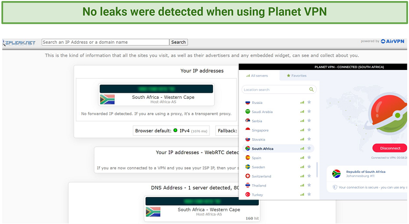 Planet VPN allows you to torrent on all its paid servers. I felt safe using it because its kill switch and leak protection proved effective during my tests. Unfortunately, it’s not super fast.