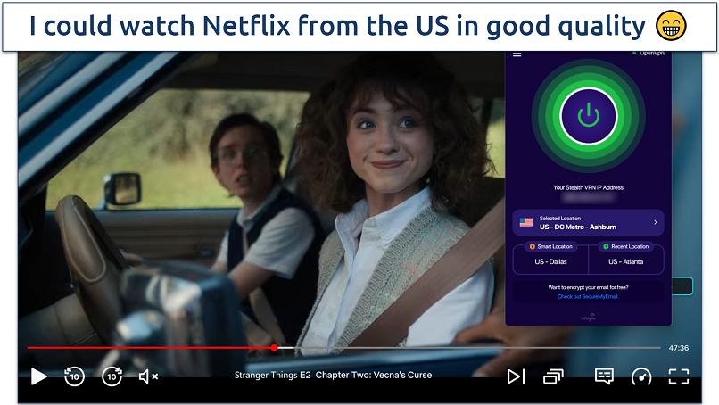 Witopia personalVPN can safely access many streaming platforms, but its connection issues hinder its performance. When the VPN was working correctly, my international team and I could enjoy high-quality streams without much added buffering or prolonged loading times. Unfortunately, it’s not always easy to connect to this VPN, and disconnections are frequent. I’ll provide more details in our server network section, but this is annoying while streaming.